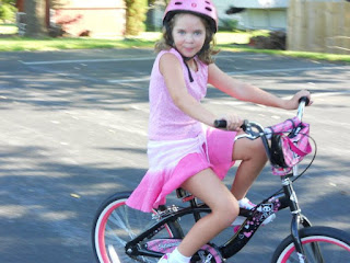 Abby learned to ride her bike w/out training wheels..she didn't think she could do it, but learned within 5 minutes! She was so proud of herself when she realized that she was riding her bike and Dad wasn't holding on!